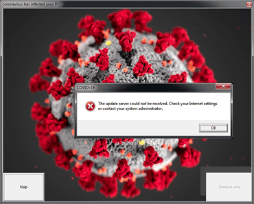 ដូច្នេះអ្នកទីមួយត្រូវបានរកឃើញក្នុងសប្តាហ៍នេះ ដោយក្រុម Malware Hunter Team ហើយត្រូវបានដាក់លម្អិតនៅក្នុងរបាយការណ៍ SonicWall។ មេរោគនេះមានការរីករាលដាល COVID-19.exe និង មានការឆ្លងជាពីរដំណាក់កាល។